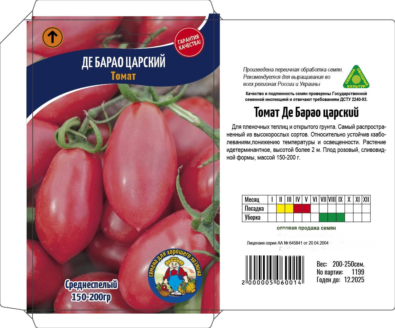 Для пленочных теплиц и открытого грунта. Самый распространенный из высокорослых сортов. Относительно устойчив кзаболеваниям,понижению температуры и освещенности. Растение идетерминантное, высотой более 2 м. Плод розовый, сливовидной формы, массой 50-70 г.