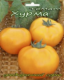 Томат Хурма Среднеранний, высокопродуктивный сорт томата для теплиц и открытого грунта, любительского овощеводства. Рекомендован для фермерских хозяйств и любительского овощеводства. Томат отличается высокой завязываемостью плодов. Томат Хурма растение среднерослое 70-100 см, детерминантного типа. Плоды очень привлекательного вида, крупные, плоскоокруглые и круглые, при созревании золотисто-оранжевые, массой 100-250 г. Хурма – очень оригинальный сорт, плоды по форме и цвету напоминают хурму. Плоды, мясистые, сладкие, необычайно приятной консистенции, имеют повышенное содержание каротина и низкое содержание органических кислот. Сорт универсального использования. Урожайность 4-5 кг/куста. Рекомендуемая плотность посадки не более 2,5 раст/м, формировать в один стебель, проводить нормировку нижних 1-2 соцветий до 3-4 завязей. Требует усиленных подкормок минеральными удобрениями. Районирован в 1999 году по РФ для мелких хозяйств.