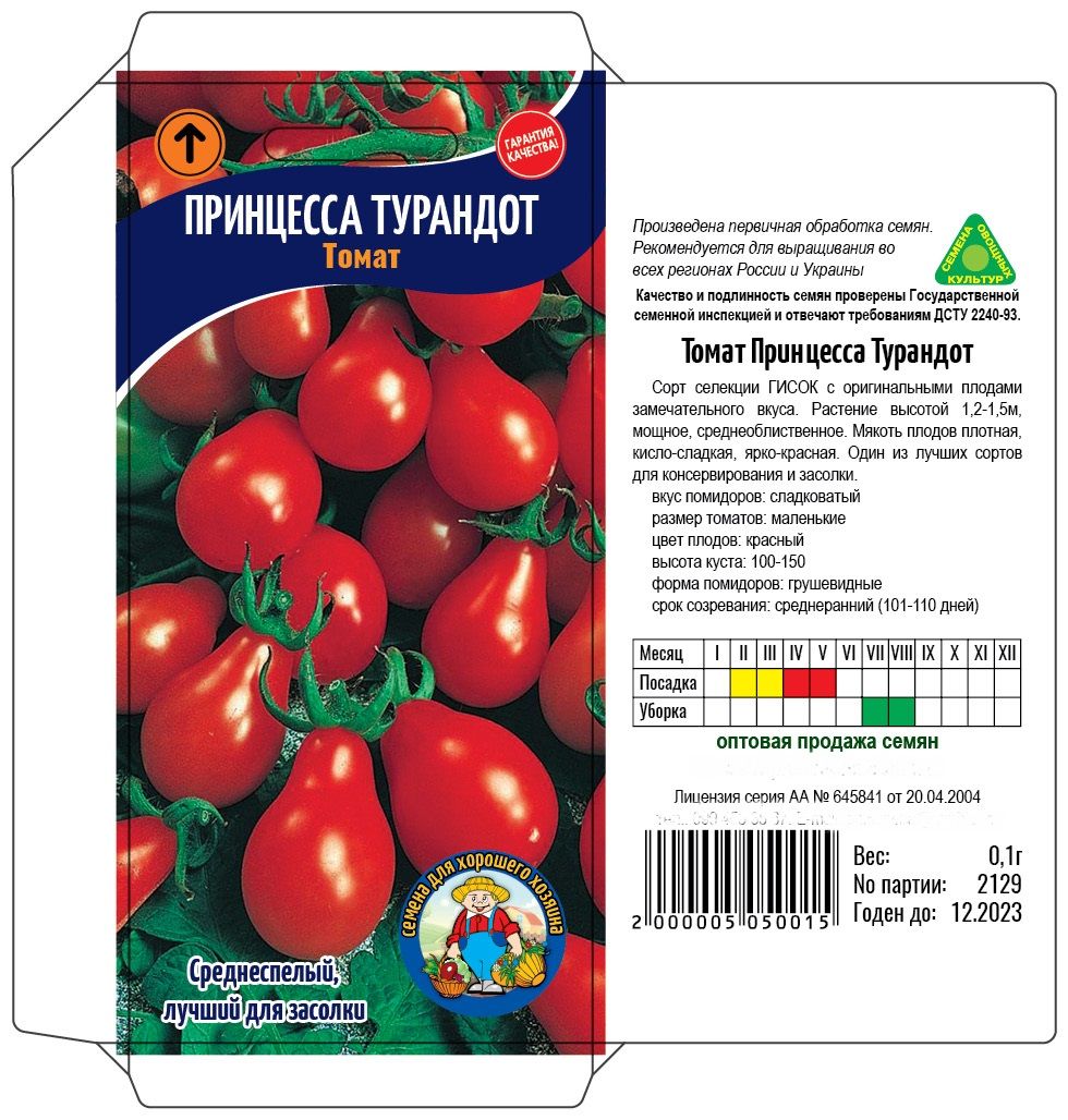 Срок созревания: среднеранний (101-110 дней).