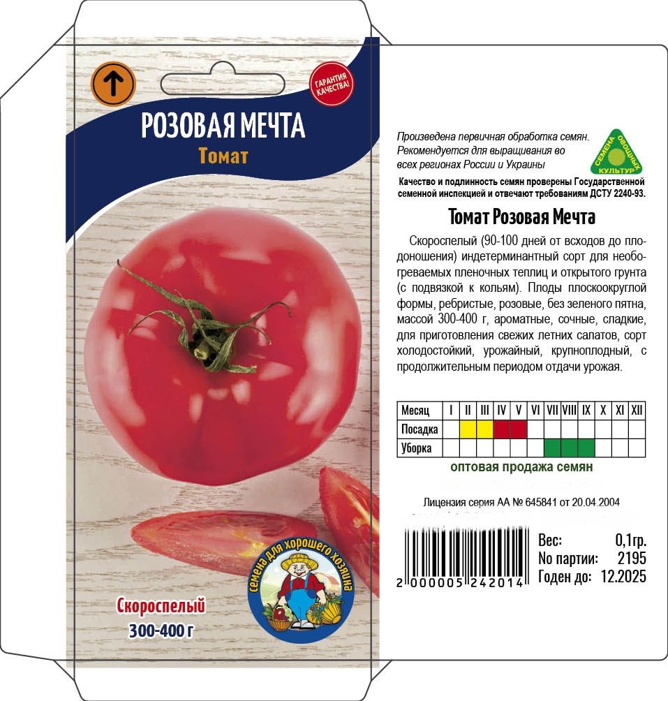 Скороспелый томат (90-100 дней от всходов до плодоношения) индетерминантный сорт для необогреваемых пленочных теплиц и открытого грунта (с подвязкой к кольям). Плоды плоскоокруглой формы, ребристые, розовые, без зеленого пятна, массой 300-400 г,ароматные, сочные, сладкие, для приготовления сведих летних салатов. Сорт холодостойкий, урожайный, крупноплодный, с продолжительным периодом отдачи урожая.
