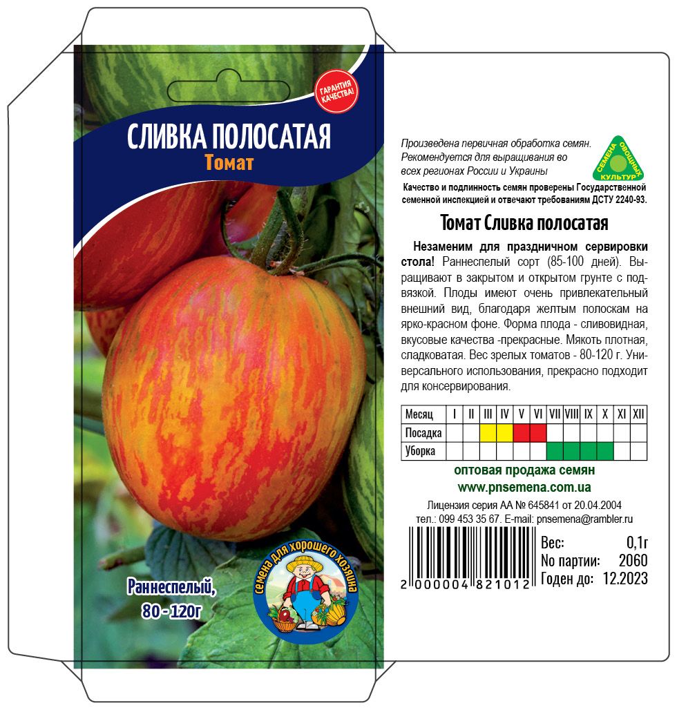 Незаменим для праздничной сервировки стола! Раннеспелый сорт (85-100 дней). Выращивают в закрытом и открытом грунте с подвязкой. Плоды имеют очень привлекательный внешний вид, благодаря жёлтым полоскаам на ярко-красном фоне. Форма плода- сливовидная, вкусовые качества- прекрасные. Мякоть плотная, сладковатая. Вес зрелых томатов 80-120 г. Универсального использования, прекрасно подходит для консервирования.