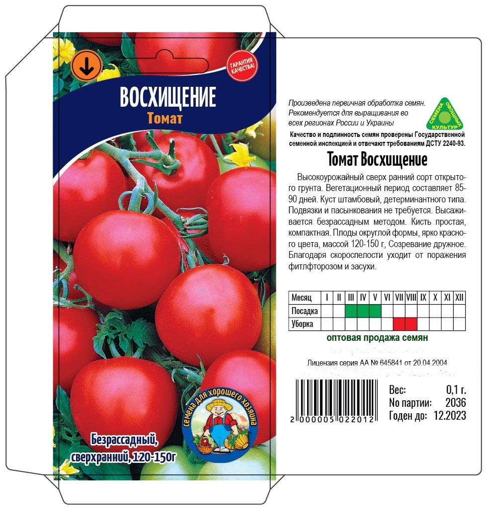 Высокоурожайный сверх ранний сорт открытого грунта. Куст штамбовый, детерминантного типа. Подвязки и пасынкования не требуется. Высаживается безрассадным методом. Плоды округлой формы, ярко-красного цвета. массой 120-150г. Созревание дружное. Благодаря скороспелости уходит от поражения болезни и засухи.