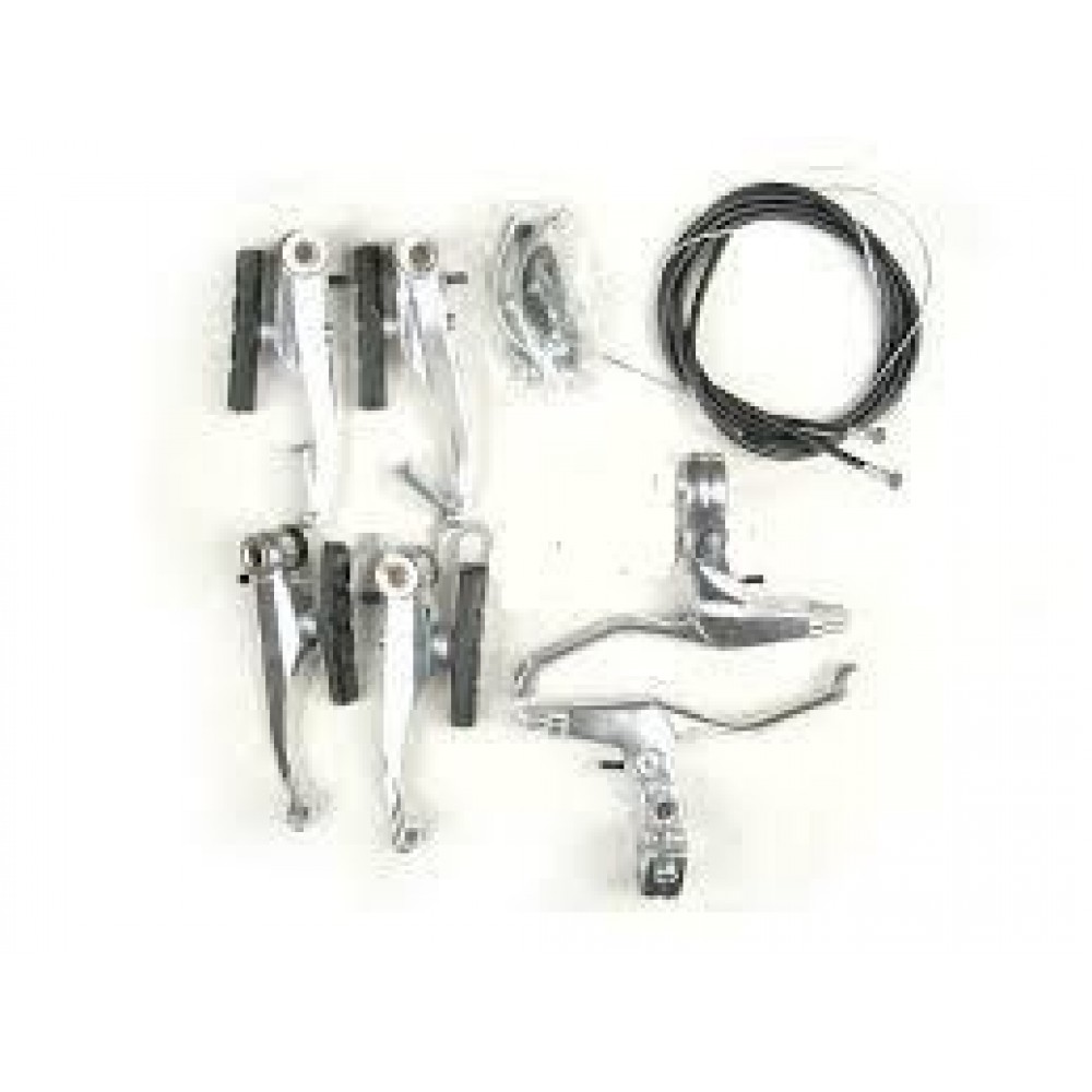 Сделаны ве-брейки из качественного металла, который не подведёт и не сломается в сложной дорожной ситуации, а ведь на большой скорости и на крутых спусках велосипедисту очень важно чувствовать уверенность в тормозах. Данная тормозная система очень популярна, она простая, но надёжная. В комплекте так же идут тросики (длина доколо 2 м) и ручки тормоза. С этими ве-бреками поездка на любом велосипеде будет безопасной и приятной.