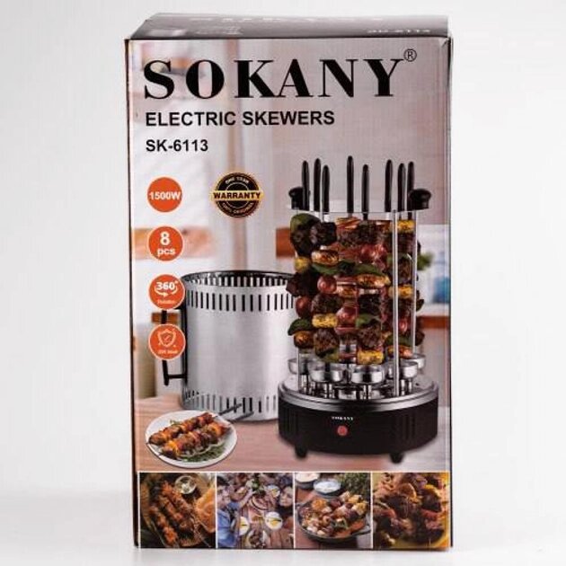 Электрошашлычница Sokany SK-6113 домашняя шашлычница вертикальная 8 шампуров аэрогриль 1500 Вт