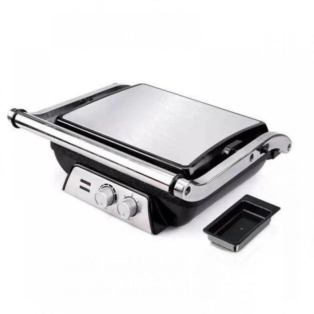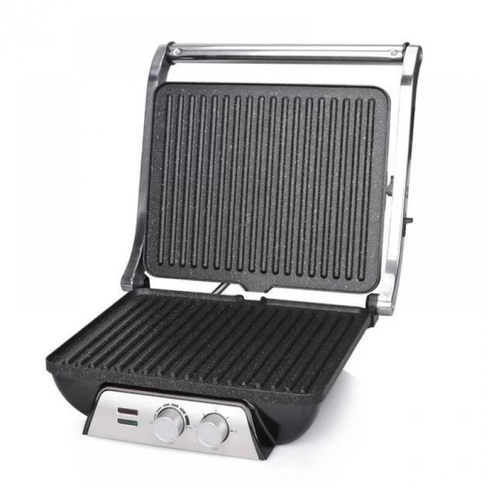 Гриль электрический, сэндвичница, с регулятором температуры и таймером 2000 Вт. Электрогриль R2684 – мобильный стационарный аппарат, который Вы можете установить в любом удобном месте, а при необходимости вынести на веранду или на улицу, туда, где есть возможность подключить его в стандартную электрическую сеть. Такой гриль пригодится в загородном доме или на даче, ведь с ним вы сможете приготовить вкуснейшие стейки, овощи, колбаски и даже шашлык в любую погоду. Антипригарное покрытие пластинок поможет вам легко и быстро протереть ее после использования. Створки гриля раскрываются на 180 градусов, что позволяет использовать их как поверхности для жарки одновременно. Есть специальный поддон, куда стекает весь сок от продуктов. Плавная регулировка температуры позволит вам подобрать оптимальный режим для любого продукта. Характеристики: Мощность - 2000 Вт. Управление - механическое. Материал корпуса -пластик, нержавеющая сталь. Тип нагреваемой поверхности - ребристая плита. Гриль пластины с антипригарным покрытием. Большая теплоизолированная ручка. Защита от перегрева. Прорезиненные ножки. Световые индикаторы для контроля сети и нагрева. Таймер приготовления. Источник питания 220-240 В, 50/60 Гц. Лоток для сбора жидкости