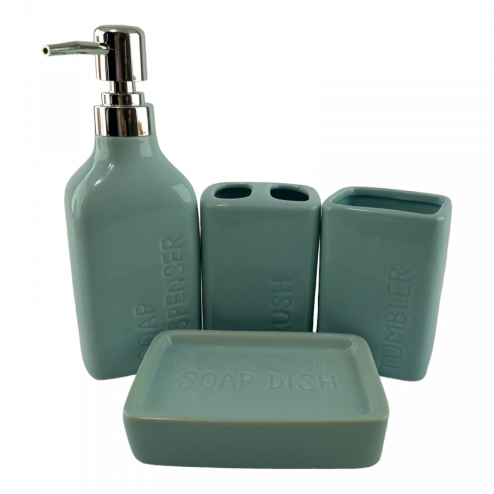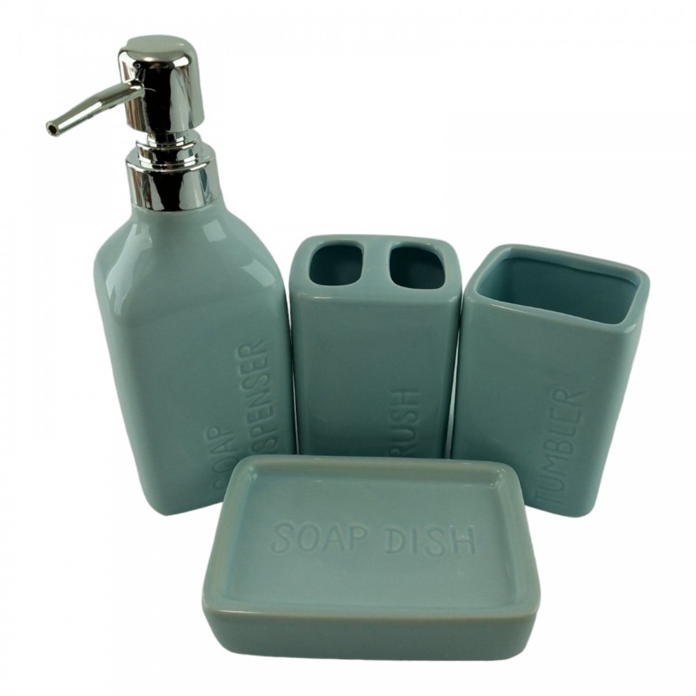 С очаровательным набором аксессуаров для ванной все предметы будут на своих местах. В керамический набор входит-дозатор для жидкого мыла, стакан ,органайзер для зубных щеток, мыльница.