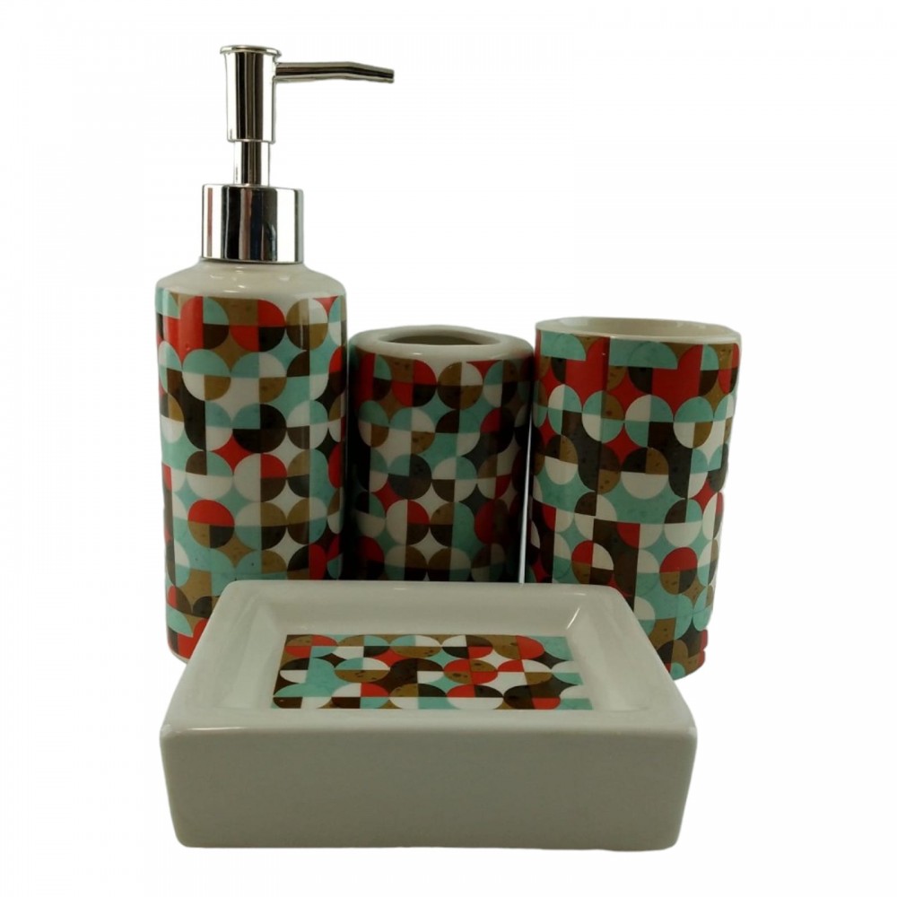 Набор для ванной керамический Красно бирюзовый узор