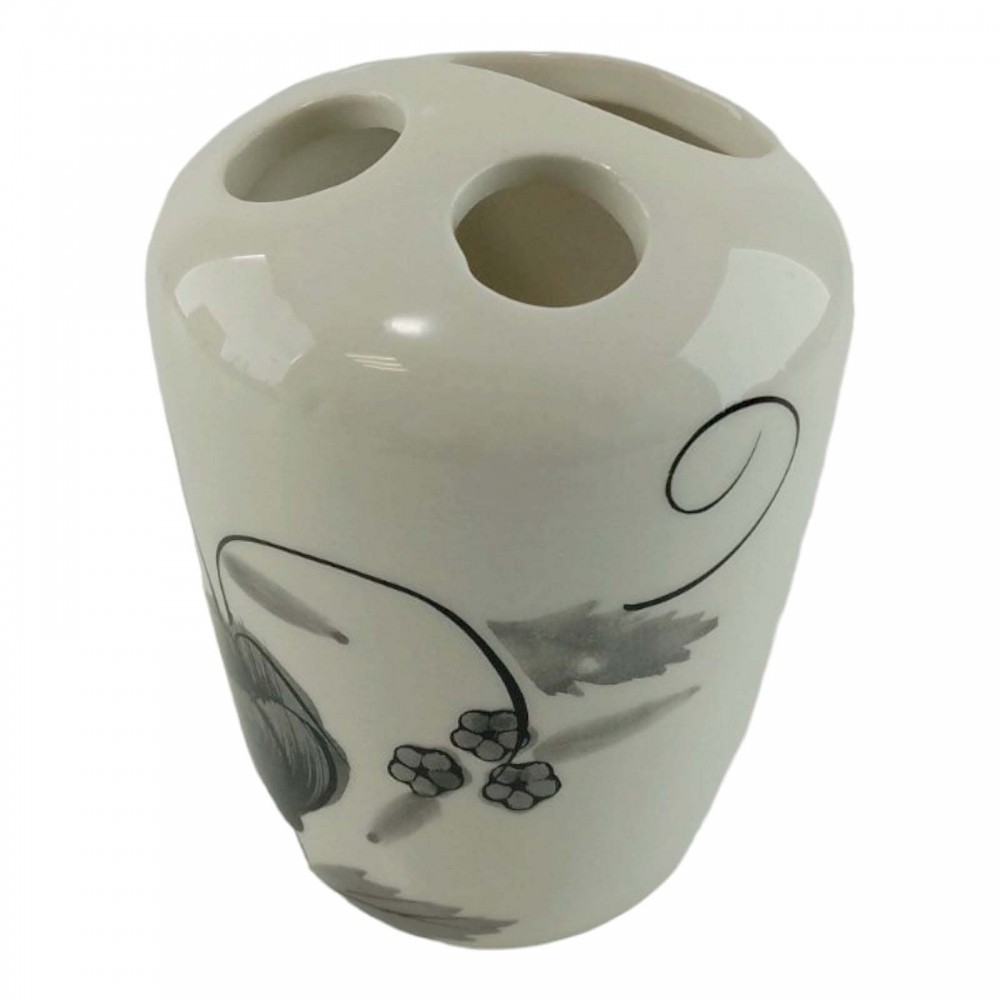 С очаровательным набором аксессуаров для ванной все предметы будут на своих местах. В керамический набор входит-дозатор для жидкого мыла, стакан ,органайзер для зубных щеток, мыльница.