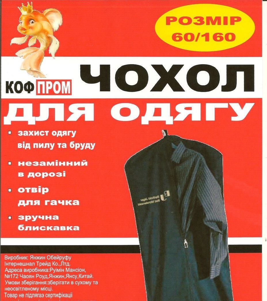 Чехол для одежды флизелиновый "КОФПРОМ" (размер 60*160 см, черный)