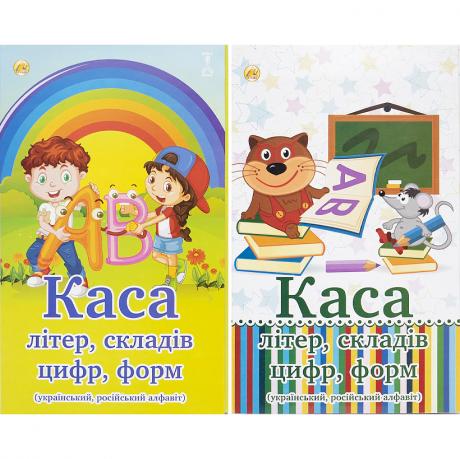 Каса літер, складів, цифр і форм (український та російський алфавіт) - зручний учбовий посібник, який зроблений з картону, щільністю 200 гр./м2. Представляє собою картонну папку 26 см у висоту та 16 см в ширину. папка має у своєму складі картонні аркуші на яких зображено фігури, літери, цифри та склади, що можна вирізати та вставляти у спеціальні картонні рамки з прорізами (також додаються до комплекту). Чудовий підручний засіб навчання для застосування у дошкільних закладах освіти, а також у початкових класах шкільних закладів.