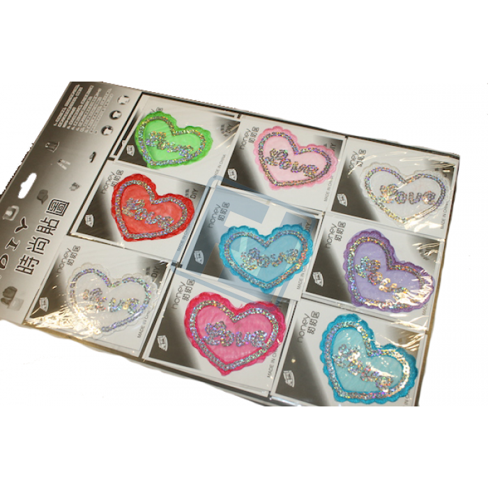 Цена указана за 1 лист аппликаций. Заказ можно осуществлять от 1 листа. Производство - Китай. На 1 листе - 9 аппликаций. Рзамер (приблизительный): 7х7см Материал: ткань, блестки. Пришиваются или приклеиваются с помощью утюга на одежду.