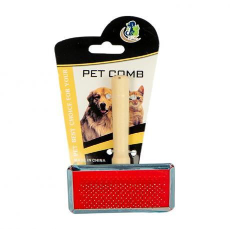Щітка для тварин із дерев’яною ручкою — зручний інструмент для догляду за шерстю. Розмір робочої частини: 9×4 см, довжина ручки: 10 см. М’які металеві зубці із закругленими кінцями дбайливо видаляють випалу шерсть і розплутують ковтуни, не травмуючи шкіру тварини. Ідеально підходить для котів і собак.