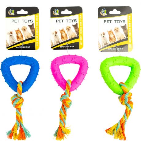 Канатна іграшка для собак у формі трикутника — чудовий вибір для жування, перетягування та активних ігор. Довжина: 17 см. Виготовлена з міцного бавовняного каната, який безпечний для зубів і ясен. Завдяки щільному плетінню іграшка сприяє очищенню зубів і зміцненню щелеп. Яскраві кольори привертають увагу собак і роблять гру захопливою. Підходить для собак малих і середніх порід. Ідеальний товар для гуртового продажу — для зоомагазинів та інтернет-платформ.