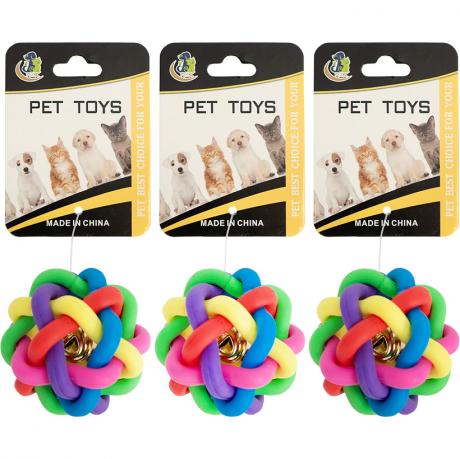 Гумовий м’яч-клубочок з дзвіночком для собак, діаметр 6 см — яскрава та цікава іграшка для жування й активних ігор. Усередині м’яча розміщено дзвіночок, який видає звук під час руху, стимулюючи інтерес улюбленця. Іграшка виготовлена з міцної еластичної гуми, підходить для собак малих і середніх порід. Форма клубочка допомагає масажувати ясна та очищувати зуби. Ідеально підходить для гуртового продажу, зоомагазинів та інтернет-платформ.