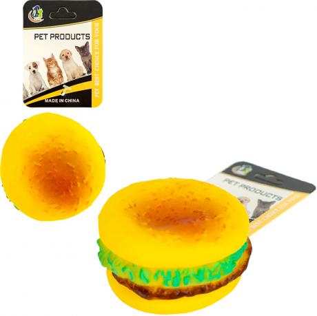Гумова іграшка для собак у формі бургера з пищалкою — оригінальний та веселий аксесуар для гри з улюбленцем. Розмір 9×4 см зручний для захоплення та жування. Яскравий дизайн у вигляді смачного фастфуду приваблює увагу собаки, а вбудована пищалка стимулює інтерес і активність. Виготовлена з міцної та безпечної гуми. Ідеальний варіант для собак дрібних і середніх порід.
