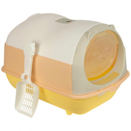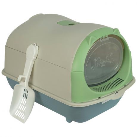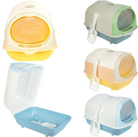 Закритий туалет для котів із кришкою у вигляді голівки з вушками — зручне та естетичне рішення для щоденного догляду. Розміри: 33×46×35 см, вхід — 24×20 см. У комплекті йде совочок для зручного прибирання. Високі борти запобігають висипанню наповнювача, знімна верхня частина забезпечує легкий догляд. Сучасний дизайн доповнить будь-який інтер’єр. Ідеально для квартири чи приватного будинку!