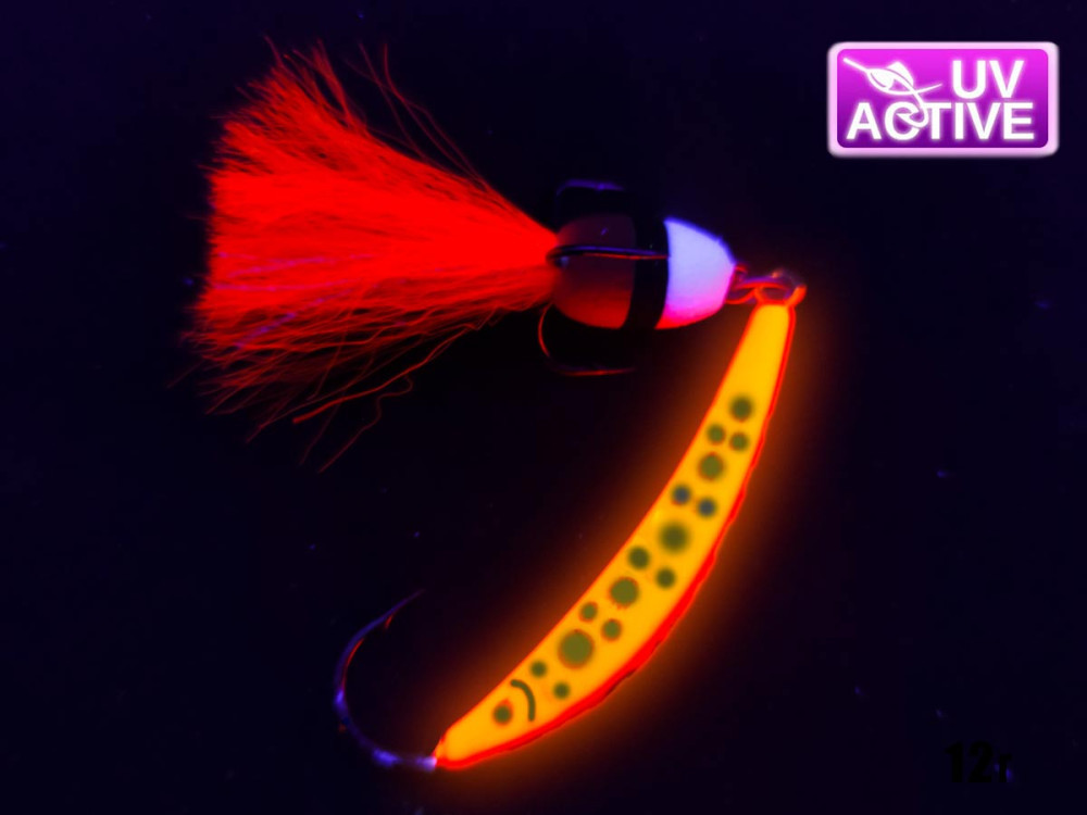 Блесна "Лыжа" прекрасно себя зарекомендовала при ловле пасивного хищника такого как судак, щука, окунь и сом. В позднеосенний и весенний период этой приманкой не против полакомиться и мирные виды рыб: карп, сазан, карась и.т.д. Приманка лыжа изготовлена из качественного свинца, крючки Kumho отличаются превосходной остротой и надежностью. Сама приманка покрыта специальной люминесцентной краской которая светиться в ультрафиолете UV-Active. Особая изюминка блесны в том, что она всегда падает на дно крючком вверх, а плавающая бубышка с люрексом продолжает на паузе покачиваться соблазняя рыбу на поклевку имитирую кормящуюся рыбку. Блесна лыжа очень универсальна и не требовательна к проводке, наилучшие результаты демонстрирует на разной интенсивности ступенчатых анимациях, а также волочение по дну с паузами.