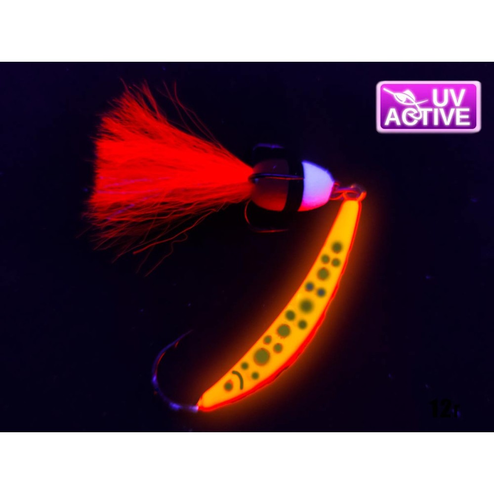 Блесна "Лыжа" прекрасно себя зарекомендовала при ловле пасивного хищника такого как судак, щука, окунь и сом. В позднеосенний и весенний период этой приманкой не против полакомиться и мирные виды рыб: карп, сазан, карась и.т.д. Приманка лыжа изготовлена из качественного свинца, крючки Kumho отличаются превосходной остротой и надежностью. Сама приманка покрыта специальной люминесцентной краской которая светиться в ультрафиолете UV-Active. Особая изюминка блесны в том, что она всегда падает на дно крючком вверх, а плавающая бубышка с люрексом продолжает на паузе покачиваться соблазняя рыбу на поклевку имитирую кормящуюся рыбку. Блесна лыжа очень универсальна и не требовательна к проводке, наилучшие результаты демонстрирует на разной интенсивности ступенчатых анимациях, а также волочение по дну с паузами.