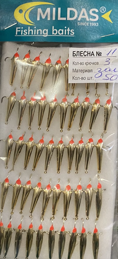 • Блесна Mildas средняя №11 золото на 3 крючка  (50 шт.)
