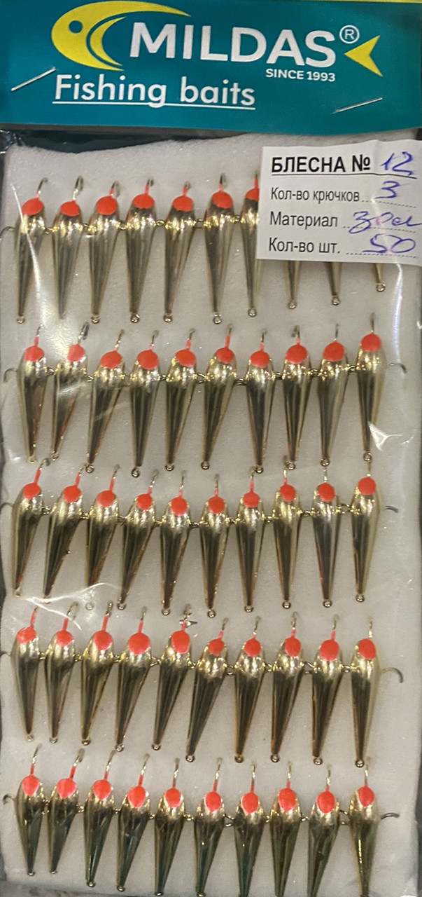 Блесна Mildas средняя №12 золото на 3 крючка (50 шт.)