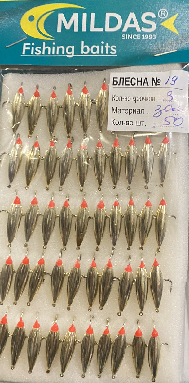 Блесна средняя Mildas №19 золото на 3 крючка (50 шт.)