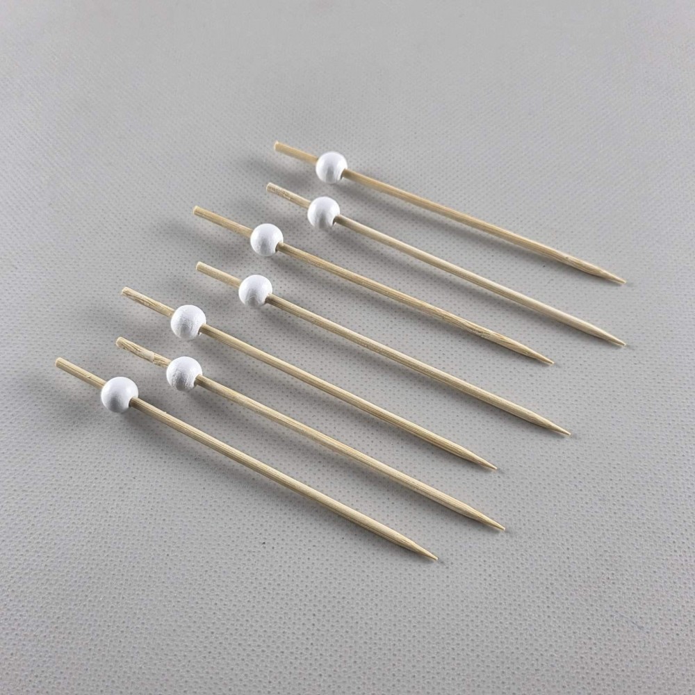 Шпажки деревянные для украшения блюд длина 12 см "Белые бусинки 100 шт/уп.
