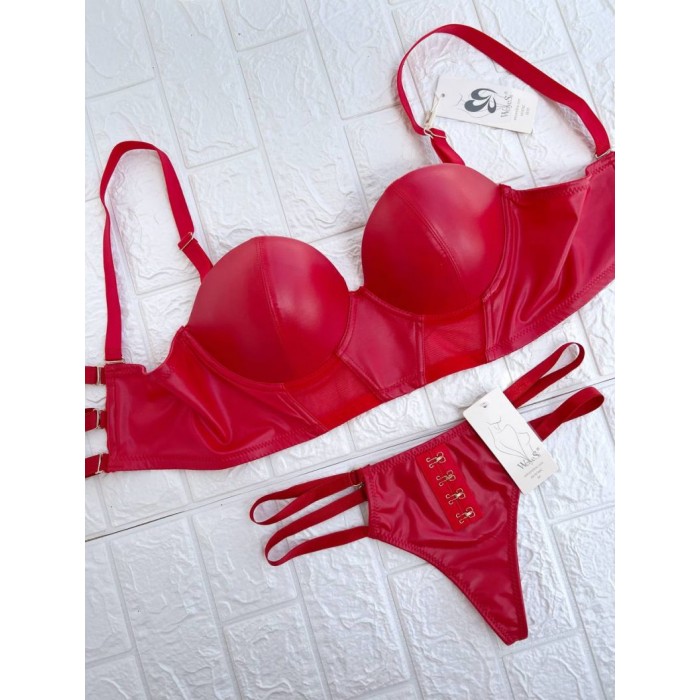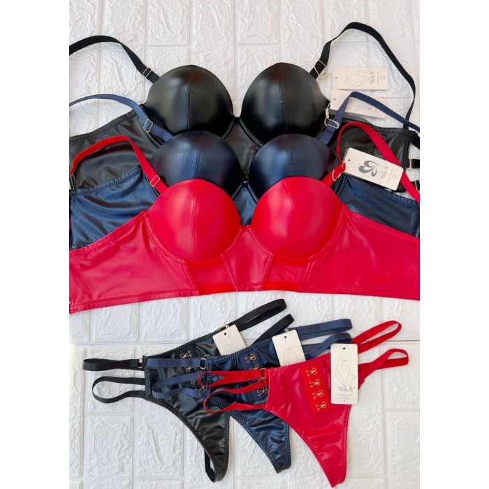 ОПИСАНИЕ Кожаный бюст-корсет. Бретель - съемная, спина - гладкая. Бикини на средней посадке.