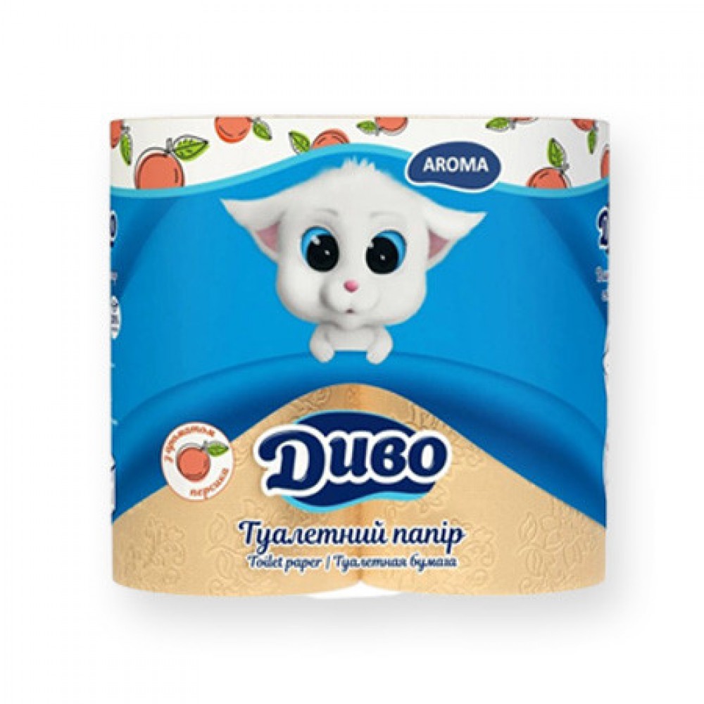 Туалетная бумага "Диво" целлюлозная двухслойная на гильзе с ароматом персика 4 рулона в уп.