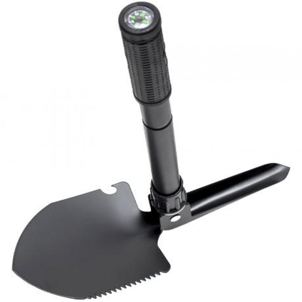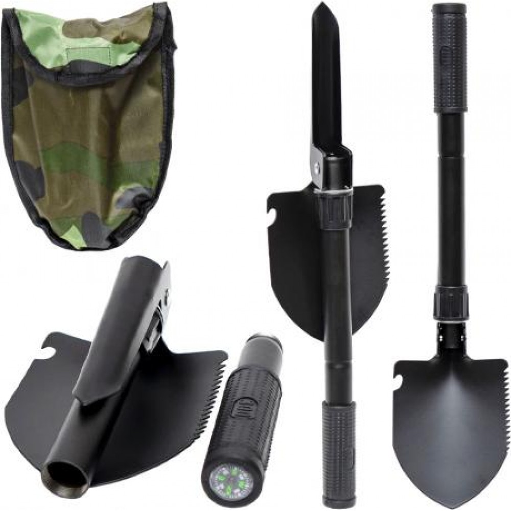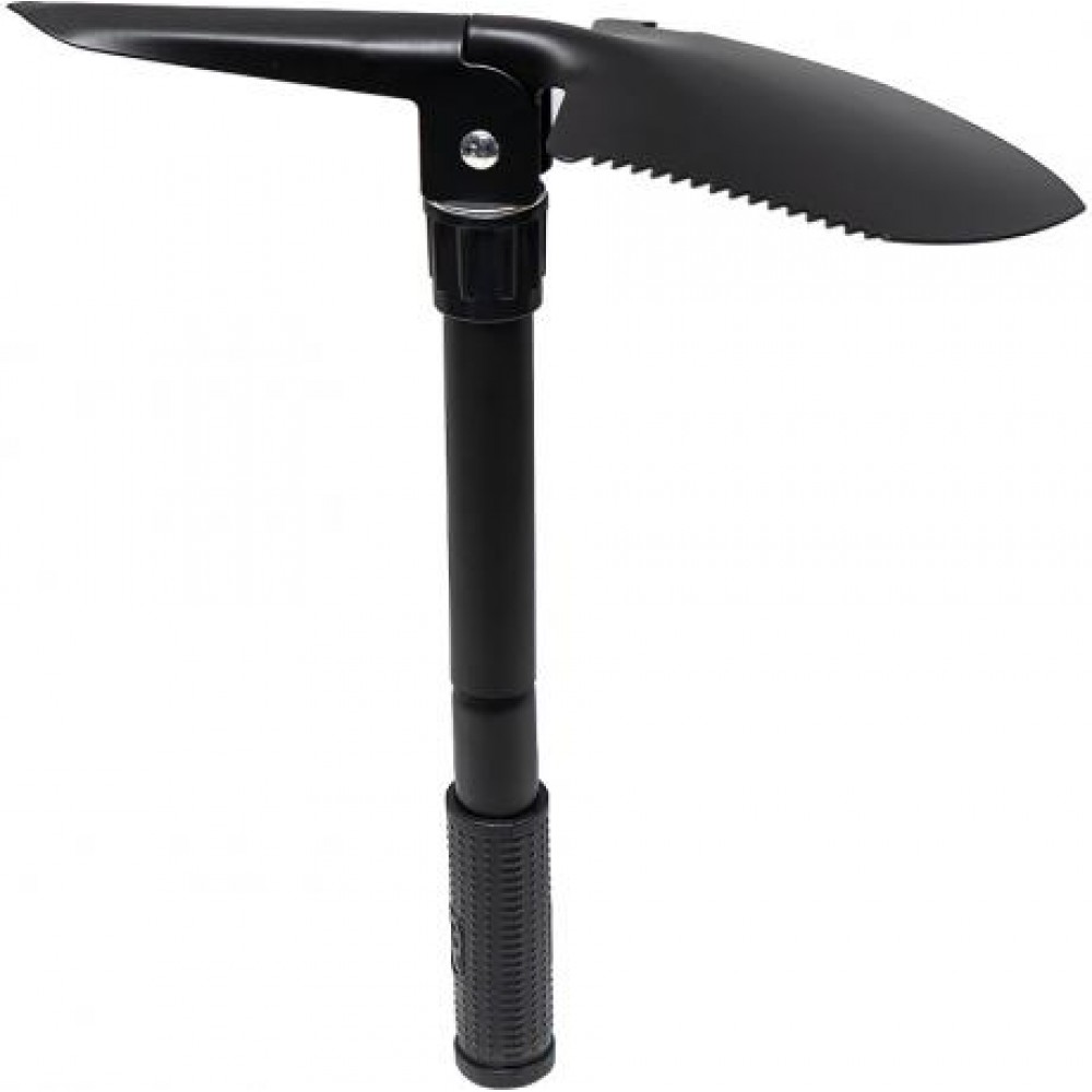 Лопата туристична складана. Лезо лопати забезпечене киркою, відкривалкою для пляшок, пильними зубцями. У комплектацію входить зручна сумка для зберігання. У складеному вигляді 15,5см. У розкладеному стані 42см. Лезо лопати: 12,5x10см, Вага 330 гр.