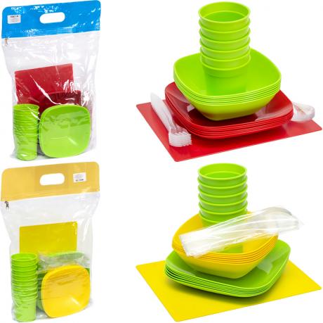 Набір посуду для кемпінгу AL-301: чайник, кострюля, сковорідка, 2 тарілки , половник, лопатка, губка