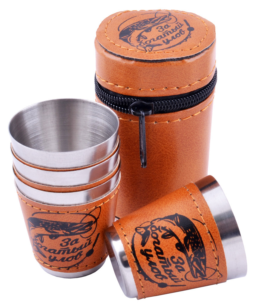 Рюмки в кожаном чехле 4 рюмки обтянутые кожей (Нержавеющая сталь)