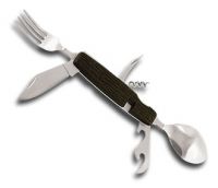 Набор складных столовых приборов включает в себя: столовую ложку, вилку, нож, штопор, открывалку. Удобен в походах и дальних поездках, на охоте и рыбалке, на пикниках и активном отдыхе. Набор раскладывается на две части: ложку и вилку.