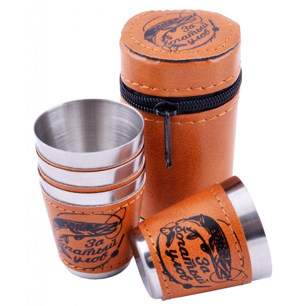 Рюмки в кожаном чехле 4 рюмки обтянутые кожей (Нержавеющая сталь)
