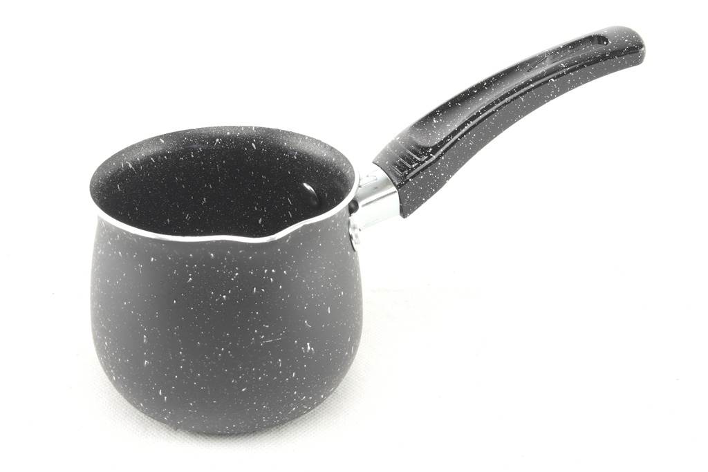 Заварник изготовлен из алюминия высокого качества. Этот металл не вступает в реакцию с напитком во время приготовления, а значит не меняет ее вкус и запах. Турка подходит для заваривания кофе, чая или различных трав или подогрева жидкостей. Имеет удобную ручку которая не нагревается в процессе использования. Легко очищается даже в прохладной воде. Имеет современный дизайн и занимает минимум места на кухне. Отличный выбор для дома или кафе/ресторанов.
