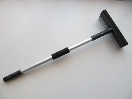 Швабра для окон выдвижная с аллюминиевой ручкой. Моющая часть - из поролона, обтянутого сеткой.