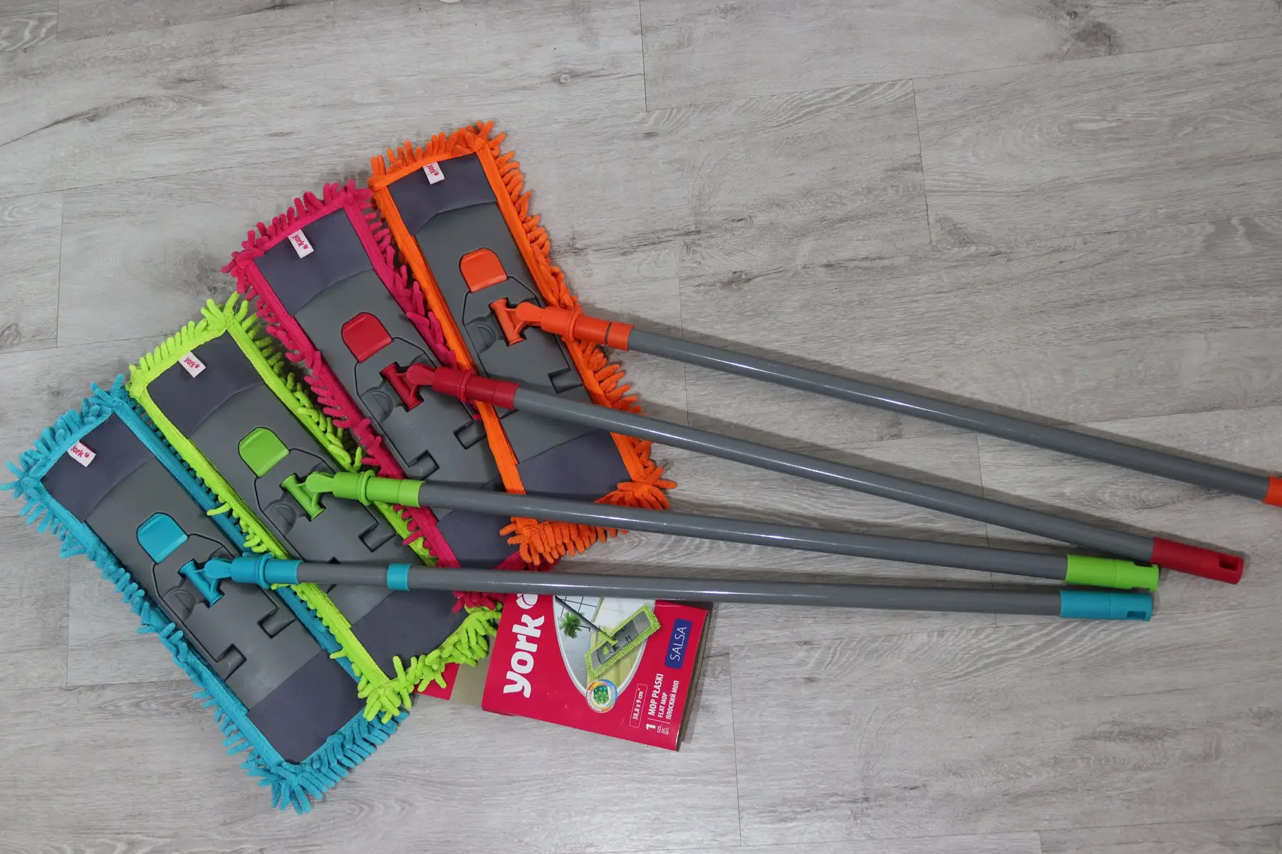 Швабра Йорк Сальса имеет насадку из 100% микрофибры, впитывает на много лучше воду, не оставляет разводы. Стенки ручки выполнены из толстого метала - это не дает ей прогибатся во время мойки пола, а также надежность. Пластиковое крепление из высококачественного пластика не подлежит коррозии.