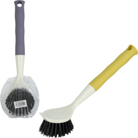 Господарська щітка 302 з довгою пластиковою ручкою призначена для зручного та ефективного очищення різних поверхонь у побуті. Загальна довжина виробу становить 27 см, що забезпечує комфорт у роботі та дозволяє легко очищати важкодоступні місця без контакту рук із забрудненнями. Діаметр робочої частини — 7 см, завдяки чому щітка ефективно видаляє бруд, наліт і побутові забруднення. Пластикова ручка довжиною 20 см має ергономічну форму, зручно лежить у руці та стійка до вологи. Щітка підходить для кухні, ванної кімнати, сантехніки, плитки та інших господарських робіт. Практичний вибір для дому, клінінгу та оптового продажу.