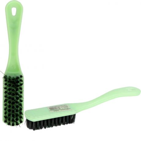 Господарська щітка 0022 з пластиковою ручкою призначена для зручного та точного очищення різних поверхонь у побуті. Компактний розмір виробу 21×3,5×2,5 см дозволяє легко працювати у важкодоступних місцях і виконувати локальне прибирання. Робоча зона розміром 8×3,5 см оснащена щетинками висотою 2 см, які ефективно видаляють забруднення, пил і наліт, не пошкоджуючи поверхні. Пластикова ручка довжиною 13 см має ергономічну форму, зручно лежить у руці та стійка до вологи, що підходить для регулярного використання. Щітка підходить для кухні, ванної кімнати, сантехніки, плитки, взуття та інших господарських робіт. Практичний товар для дому, клінінгу та оптового продажу.