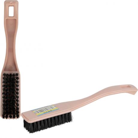 Господарська щітка 418 з пластиковою ручкою призначена для зручного та ефективного очищення різних поверхонь у побуті. Компактні розміри виробу — загальна довжина 21 см і ширина 3,5 см — роблять щітку зручною для локального прибирання та роботи у важкодоступних місцях. Щетинки висотою 2,5 см добре видаляють забруднення, пил і наліт, не пошкоджуючи поверхні. Пластикова ручка ергономічної форми зручно лежить у руці та стійка до вологи, що дозволяє використовувати щітку на кухні, у ванній кімнаті та інших господарських зонах. Виріб підходить для чищення сантехніки, плитки, меблів, взуття та побутових предметів. Практичний універсальний товар для дому, клінінгу та оптового продажу.