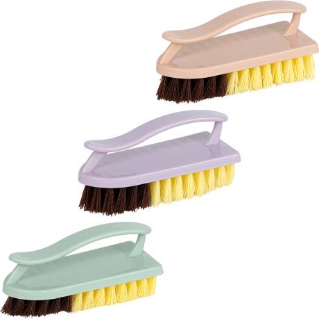 Щітка-праска 1689 — універсальна господарська щітка для щоденного ефективного прибирання. Розмір 14×5,5×6,5 см забезпечує зручний хват і комфорт у використанні. Міцний пластиковий корпус з ергономічною ручкою зручно лежить у руці та дозволяє легко очищати різні поверхні. Щетинки висотою 2,5 см середньої жорсткості добре справляються із забрудненнями, не пошкоджуючи поверхню. Підходить для кухні, ванної кімнати, сантехніки, плитки, підлоги, взуття та інших господарських робіт. Оптимальний вибір для дому та оптових продажів.