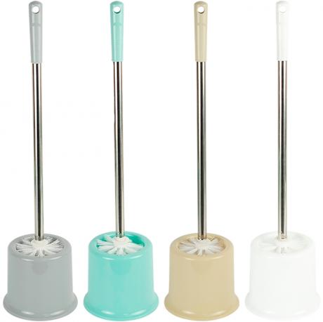 Щітка для унітазу, забарвлена в однотонний колір, обладнана металевою ручкою та підставкою. Виготовлена з міцного пластику, що забезпечує її довговічність. Довжина щітки становить 49 см, що дозволяє легко очищати внутрішні стінки унітазу, включаючи важкодоступні місця. Розміри підставки - 11,5*13,5 см.
