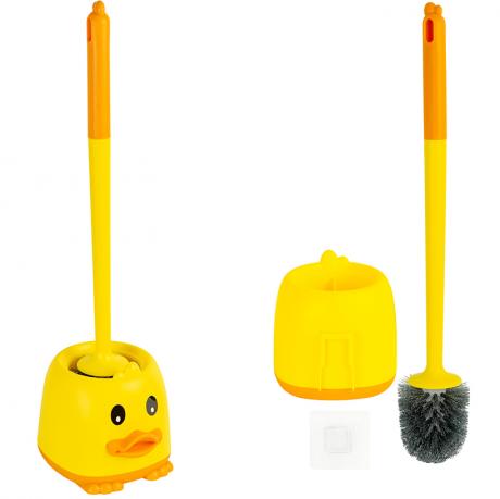 Щітка для унітаза з підставкою — практичне рішення для підтримання чистоти в санвузлі. Загальна висота у зібраному вигляді — 52 см, довжина щітки — 49 см, розмір чистячої головки — 10×6,5 см, розмір підставки — 13×14 см. Чистяча частина виконана з пластикової щетини, корпус і підставка також з пластику. Ручка зручної довжини, передбачений отвір для підвішування. У комплект входить прозора наклейка для кріплення на стіну. Підставка доповнена декоративними елементами з фігурними вставками у вигляді дзьоба. Щітка з підставкою упаковані в пакет. Ціна вказана за 1 одиницю товару. Товар вигідний для оптових магазинів і підходить для роздрібного продажу.