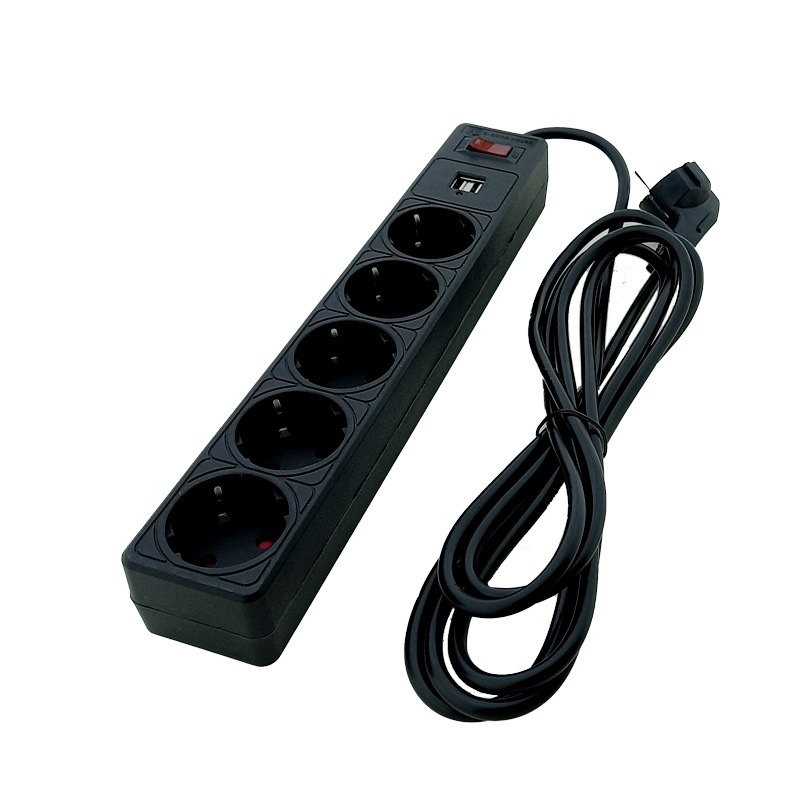- Модель:Сетевой фильтр 5 гнезд с заземлением, 3 м, 2USB, защитные шторки