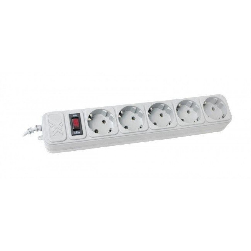 Сетевой фильтр MAXXTER 5 гнезд 3 м(3*0.75мм) с заземлением и выключателем серый