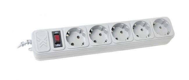 Сетевой фильтр MAXXTER 5 гнезд 5 м(3*0.75мм) с заземлением и выключателем серый