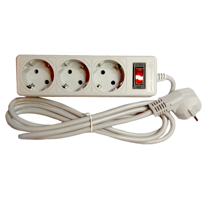 - Модель:Сетевой фильтр с заземлением 3 гнезда, 2 м, серый