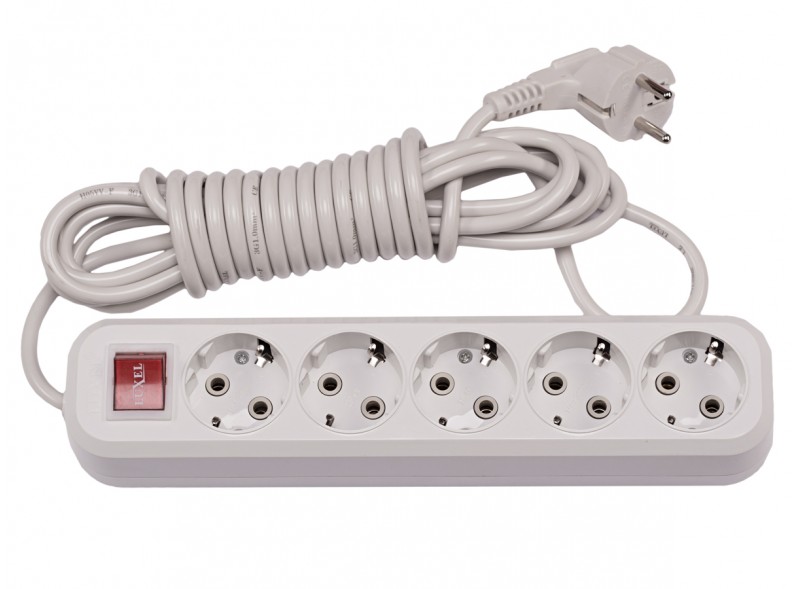 Сетевой удлинитель Luxel 5 розеток 3М с заземлением и выключателем (7273)