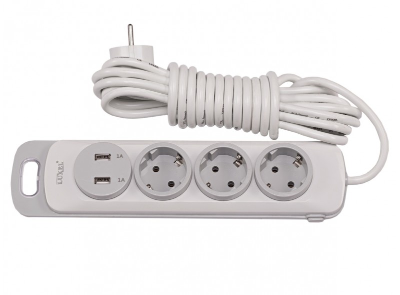 Сетевой удлинитель Luxel Nota 3 розетки 5М с заземлением и выключателем +2 USB гнезда(4335)