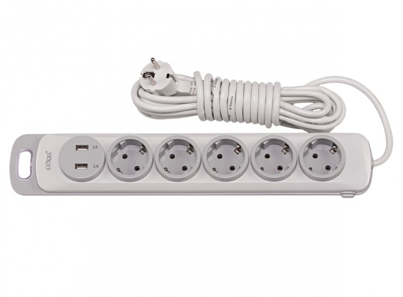 Сетевой удлинитель Luxel Nota 5 розетки 3М с заземлением и выключателем +2 USB гнезда(4373)