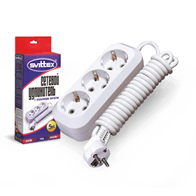 SV-010-5. Удлинитель SVITTEX с трехместной розеткой, заземляющим контактом (5 м) Напряжение: 220..250 В. Номинальный ток: 16 А. Частота тока: 50/60 Гц. Климатическое исполнение: УХЛ4. Степень защиты: IP 20. Сечение проводников: 3х1,0 мм². Материал корпуса: пластик ABS. Материал вставки: негорючий пластик ABS. Материал контактной группы: латунь. Макс. мощность: 2,5 кВт. Длина шнура: 5 м. Входные розетки: EURO/RUS